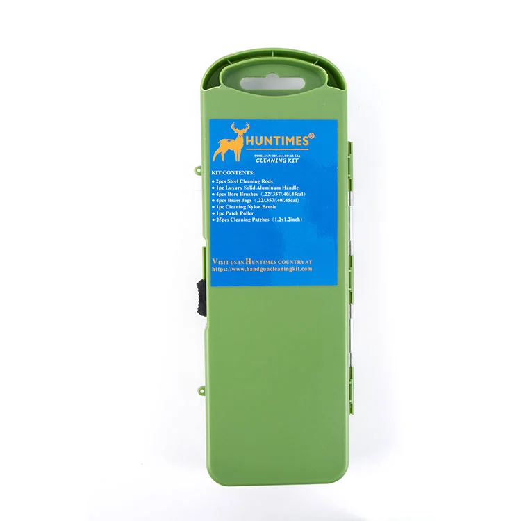 Ang aming aluminyo alloy handgun cleaning kit ay naglalaman ng 2 bakal rod, 1 deluxe aluminyo hawakan, 4 na brushes (. 22/. 357/. 40/. 45), 4 na mga tip sa tanso (. 22/. 357/. 40/. 45), 1 nylon cleaning brush, 1 patch puller, at 25x1. 2x1. 2 Paglilinis ng mga patch. Dinisenyo ito para sa pinakamainam na pagganap at pangmatagalang tibay. Ang logo ng hawakan, ang logo ng sticker sa harap ng kahon, at ang logo ng Mga Detalye ng Produkto sa likod ay maaaring idinisenyo ayon sa iyong mga pangangailangan. Maligayang pagdating upang kumunsulta sa amin!